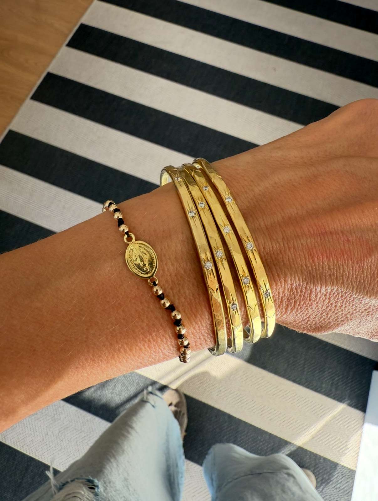 Pulseras esclavas en laton con cristal engarzado x 3 y baño de Oro 18 k